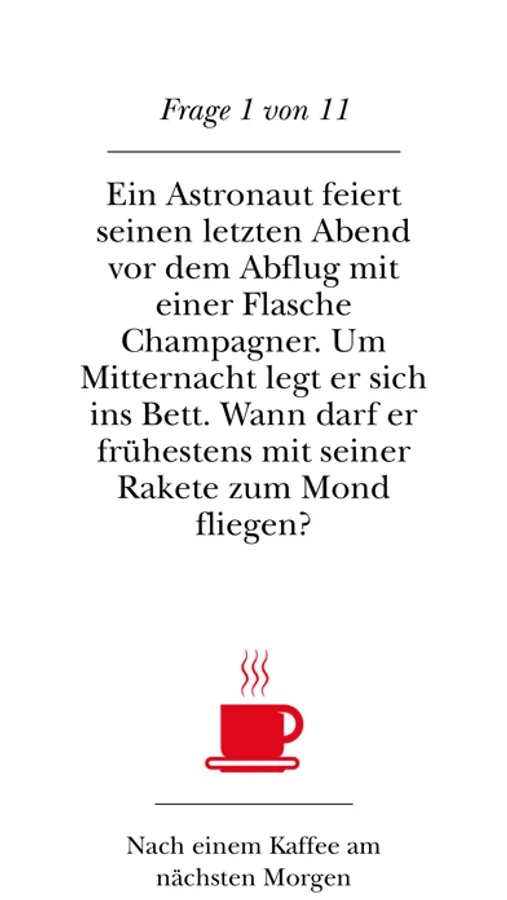 "Die Alcohol Facts Quiz App beantwortet die häufigsten Fragen rund um das Thema Alkohol und regt jede/jeden dazu an, die Frage ""Wie viel ist zu viel?"" für sich persönlich zu beantworten. Zum Beispiel: Stecken in einer Flasche Rotwein mehr Kalorien als in einer Tafel Schokolade? Ab wann ist ein Astronaut nach einer durchzechten Nacht wieder einsatzfähig? Wie wirkt sich Alkohol beim Sex aus? Und wie viel ist zu viel? Das und vieles mehr erfährst du im unterhaltsamen und informativen Quiz.