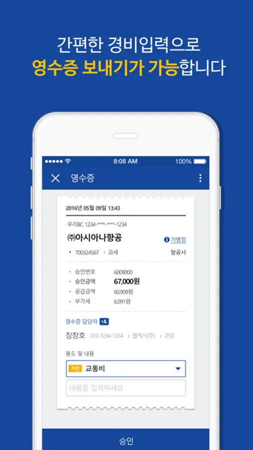 종이영수증을 더 이상 모으지 말고, 자동 수집된 법인카드 영수증으로 간편하게 경비처리를 하세요