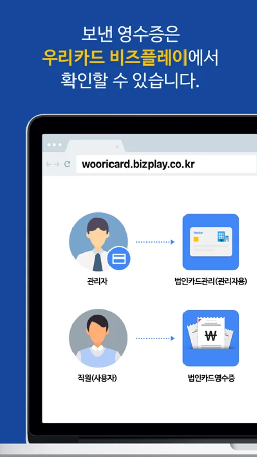 *이 앱은 우리기업카드를 이용하는 경비 사용자에게 제공되는 모바일 앱입니다.* (wooricard.bizplay.co.kr)