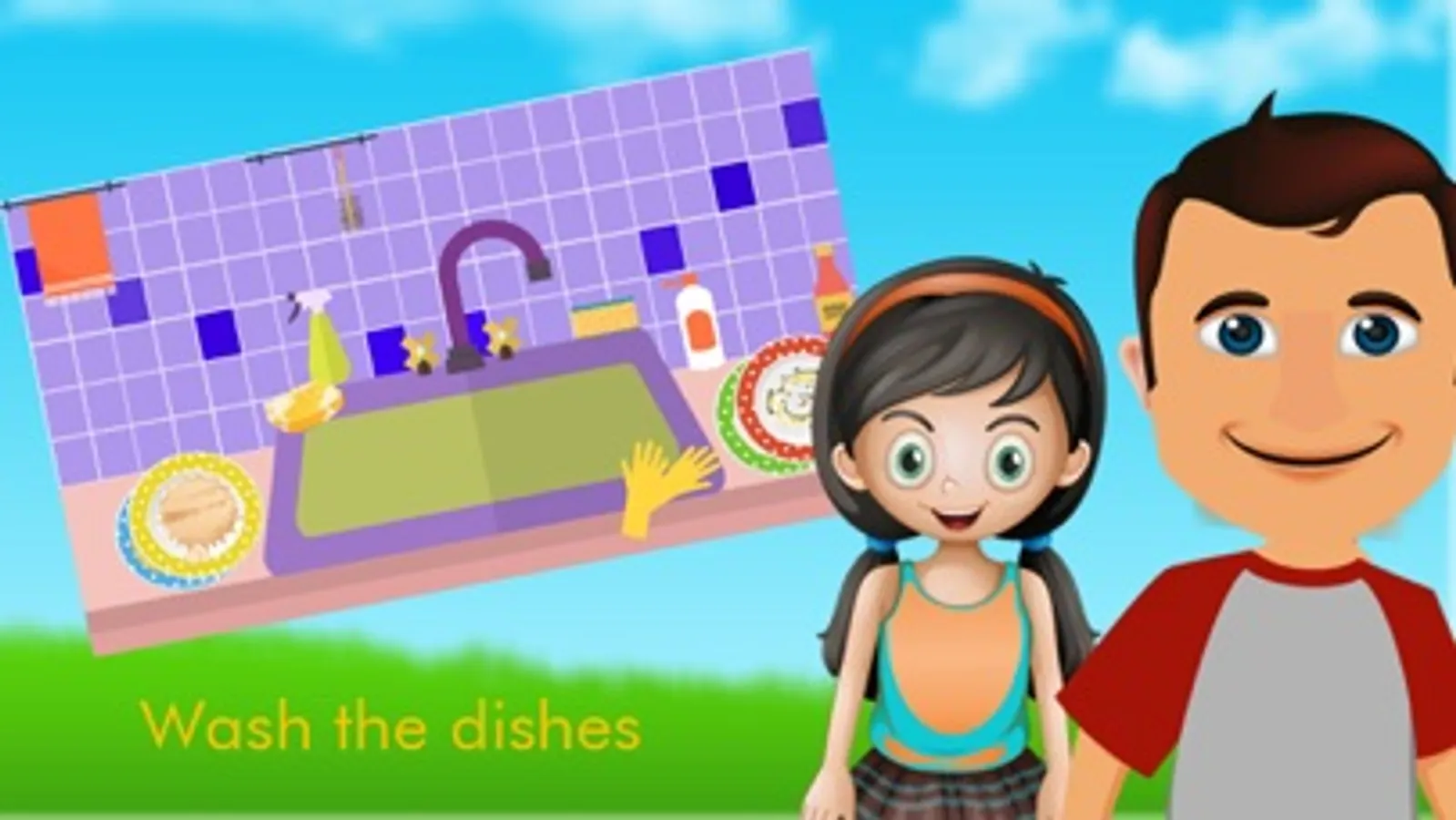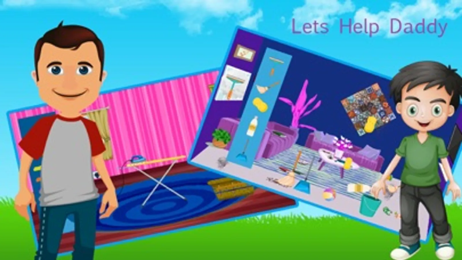 Mom is out of town and as she left the house, it becomes messy! So lets help daddy to cleanup the messy House. Be the best daddy's little helper and cleanup the messy house and engage in some awesome fun filled house cleanup adventure! Wash Dirty dishes, set the dinning table for the dinner and cleanup the living room and much more. So let's start helping daddy to clean the house.