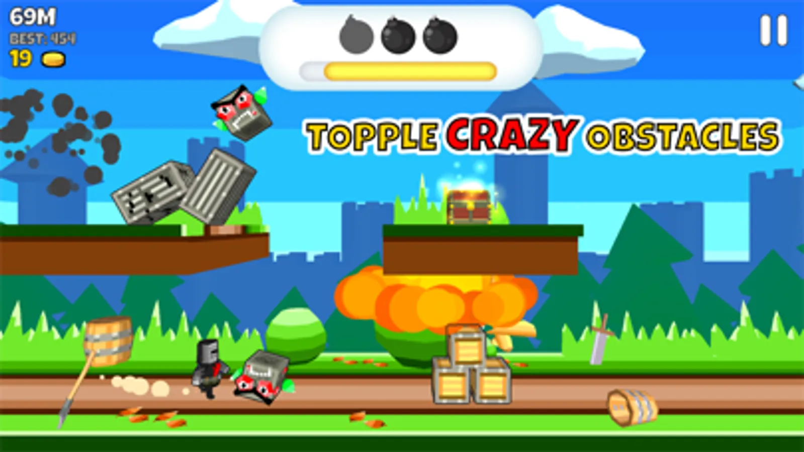 Bomb Quijote - a courageous medieval knight - has a secret skill: he can make powerful bombs to destroy his enemies! Unfortunately for him he happens to see enemies everywhere... even where there's none. Running headfirst towards danger he blasts, jumps, collapses and destroys his path through hordes of obstacles that in his mind are his sworn enemies.