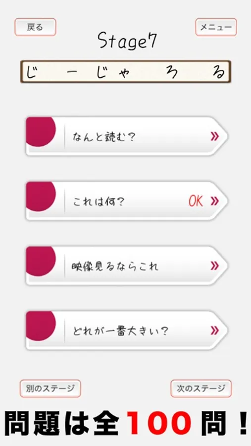 ステージを進むごとに問題が難しくなっていきます。