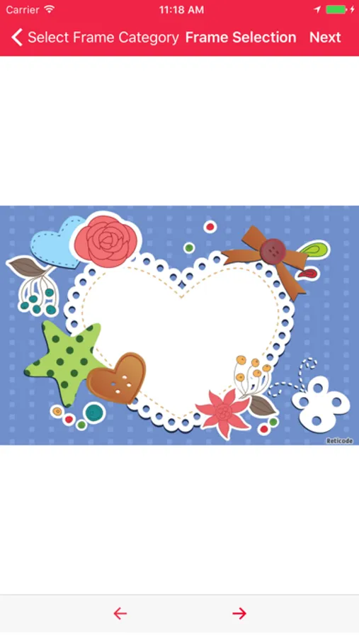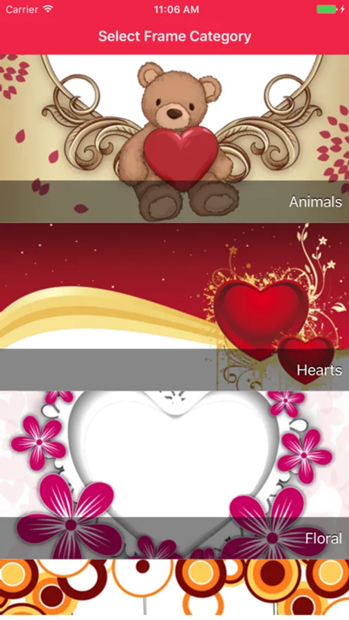 2.- Once you have chosen the frame category you would like to use, you can browse through the different love frames for photos you can find in that section.