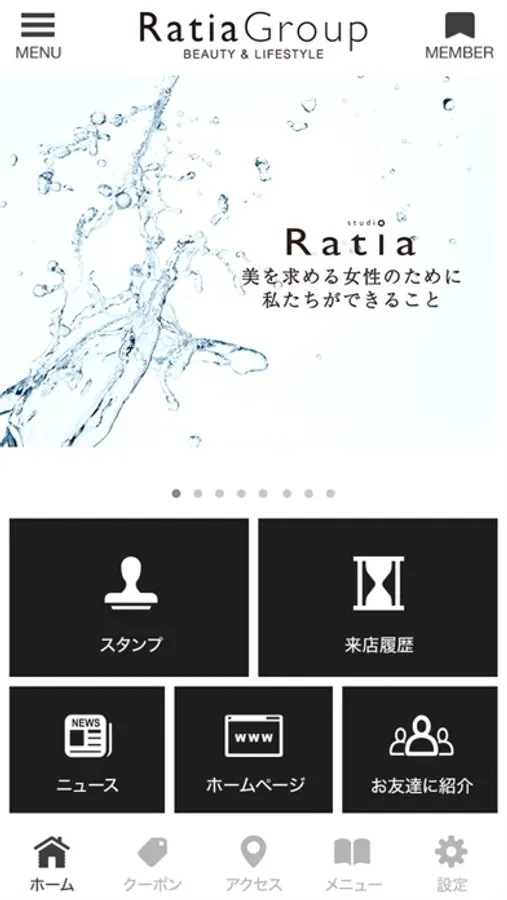 このアプリではRatia Groupの色々な情報やアプリユーザー限定のお得なサービスが手に入ります!