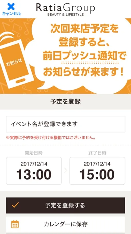 ●次回来店日登録の機能では、登録した前日にプッシュ通知が届くので、予定の再確認がきます。
