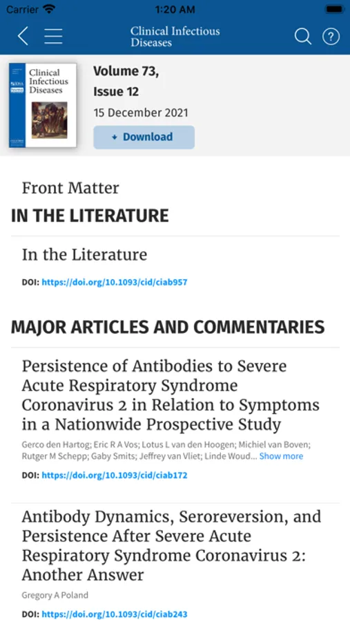 The IDSA (Infectious Diseases Society of America) Journals app from Oxford University Press enables you to read the leading journals Clinical Infectious Diseases, The Journal of Infectious Diseases, and Open Forum Infectious Diseases both online and offline on your iOS device (provided you have a relevant personal subscription, institutional subscription, or society membership).