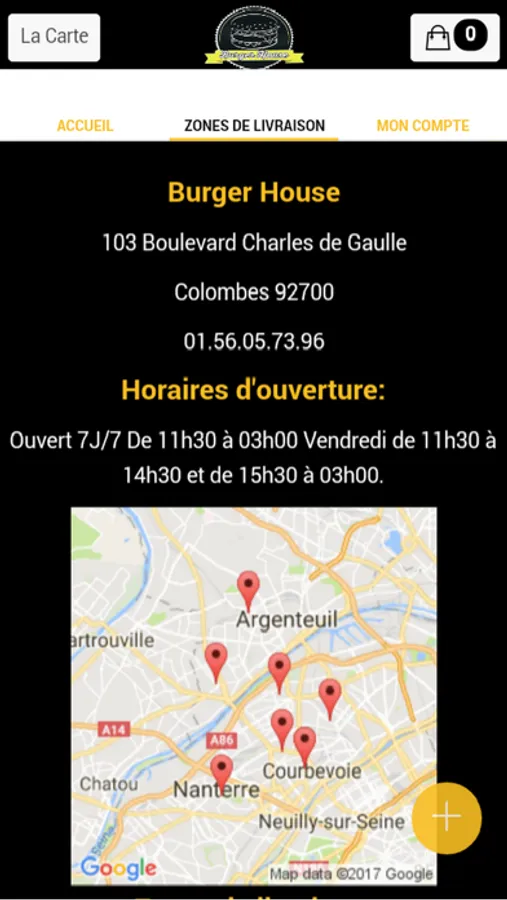 L'application Iphone/Ipad de Burger House vous permet de commander en ligne ou par téléphone via votre application . Vous pouvez consulter notre carte et choisir vos produits .