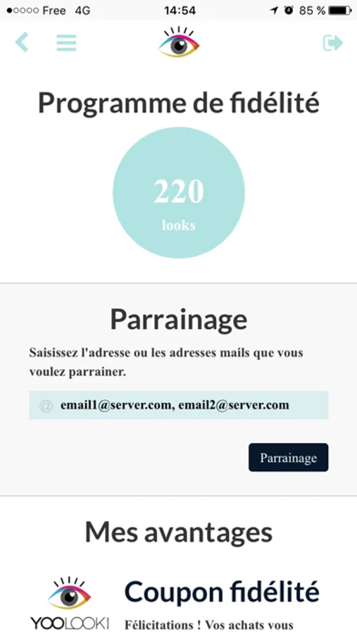 - Consultez votre compte fidélité : solde de looks et bons de réduction disponibles