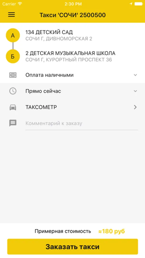 Приложение для легкого заказа такси через интернет в Сочи.