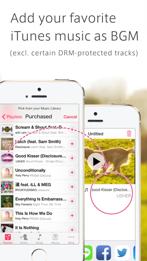 - iPhone/iTunesから自分の好きな曲を動画のBGMにすることができます。