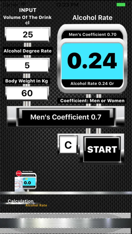 Go back successively, your weight, your sex, the quantity of drink in cl and its category.