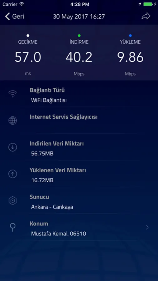 İnternet hız testi sonuçları konumunuza ve şebekenizin anlık trafik yoğunluğuna bağlı olarak değişkenlik gösterebilmektedir.