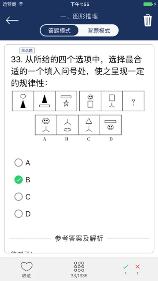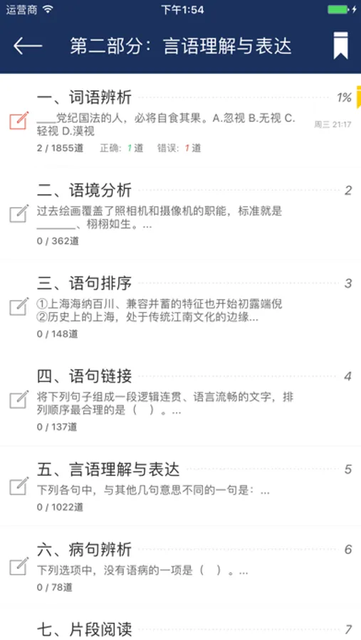一、公务员考试行测专题分五大内容模块:模块内容清晰,有答题与背题两种模式,每道题通过卡片显示、试题目录,漂亮美观。 可以点击加入收藏、有答错提示、查看每题对错一目了然、清空重做本份章节、做题进度与时间、阅读进度、书签等功能。