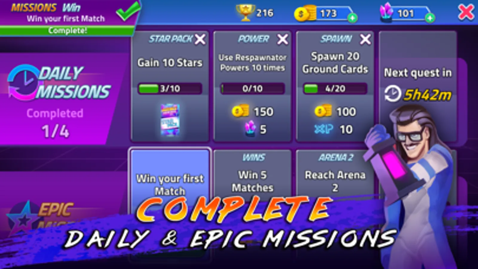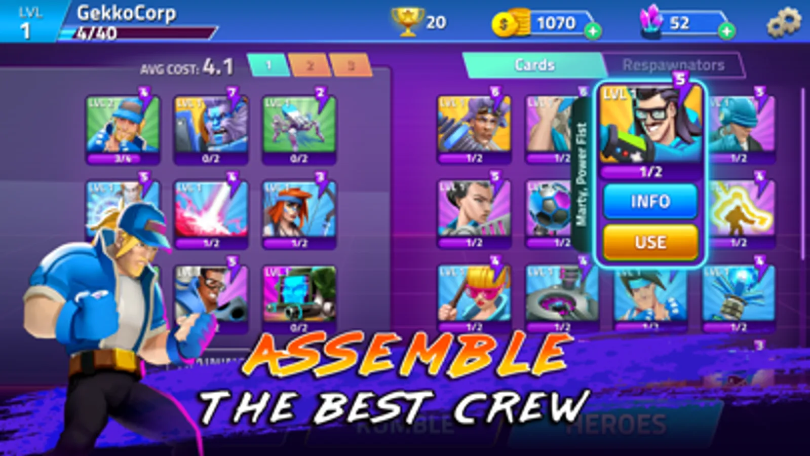 • Collect + upgrade totally rad fighter heroes in common, rare, epic and legendary flavors