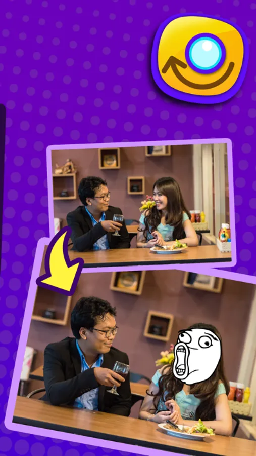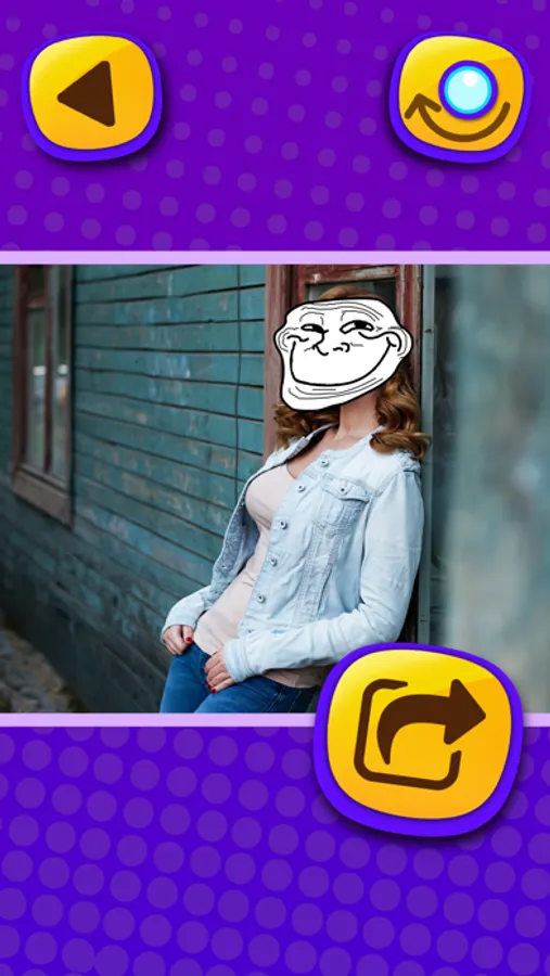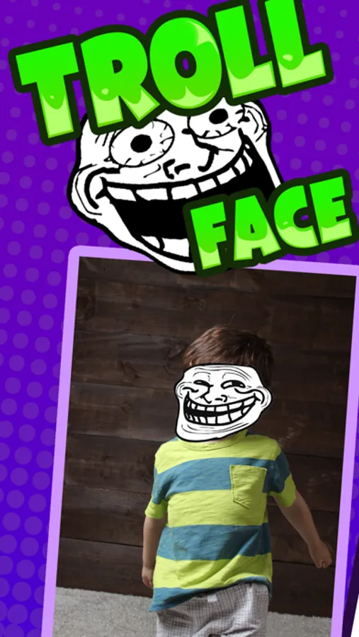 Pinch and tap on stickers to enlarge and move them! This way, you get to adjust them to faces in the picture. Choose one or more face filters – depending on number of people on your photos! You can prank your friends and have a good chuckle over these face filters. When you don't like the outcome, you get to delete the face sticker and choose a new one! Swap faces with cute animated faces known as memes or trollfaces and share the outcome. Let your friends on social networks know how cool you are! Or, you can just save the photos to your gallery and admire them in private! Have a troll face edit in very few steps! Free download Face Camera & Meme Creator: Funny Comic Maker and roll on the floor laughing!