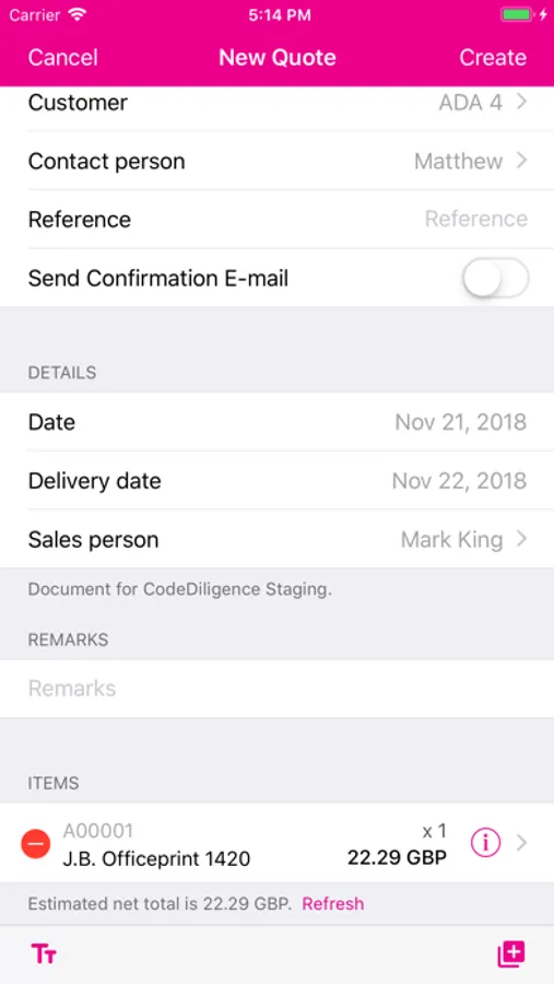 Add new quotes and sales orders directly into SAP Business One with the Enterpryze Sell app. Enter all the key details into your quote and then easily convert it into a sales order. The Enterpryze sell app then syncs data directly back into SAP Business One.