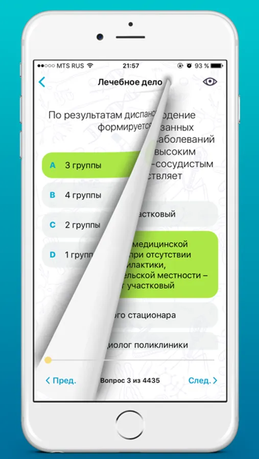 Учебный режим - в этом разделе вы сможете пролистывать вопросы, словно страницы в реальной методичке, благодаря превосходной страничной анимации. Мы добавили возможность быстро пролистывать к нужному вопросу, а также подсвечивать или нет правильные ответы.