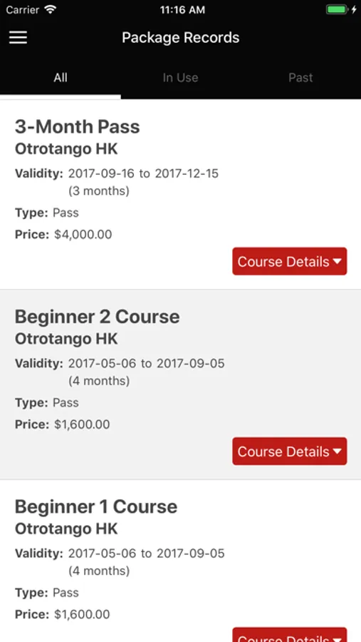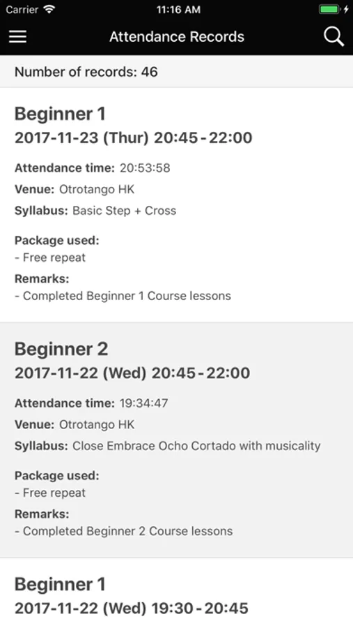 OTROTango app provides members with real-time news information, package history, attendance history, timetable, and course/package prices. Members can create profile in the app.