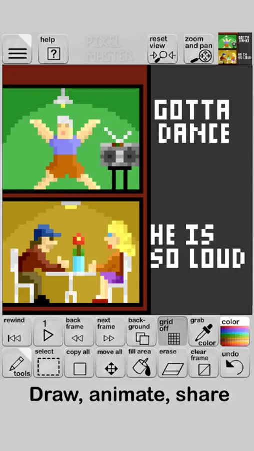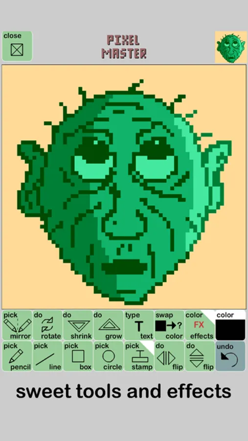 Pixel Master is an App for making custom pixel drawings and animations. Plenty of tools, effects, and export options give you the freedom to create and share your art for fun or professional use.