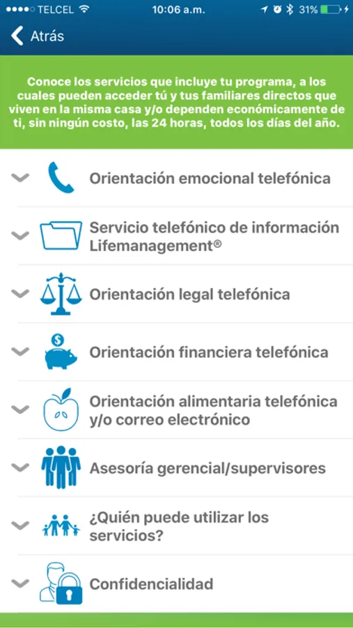 Este es un programa que permite tener accesos a servicios de apoyo, disponibles las 24 horas los 365 días del año. Cada llamada es tratada con el debido respeto y absoluta confidencialidad, por lo que puedes estar seguro de que la información que nos confíes se tratará con absoluta discreción.