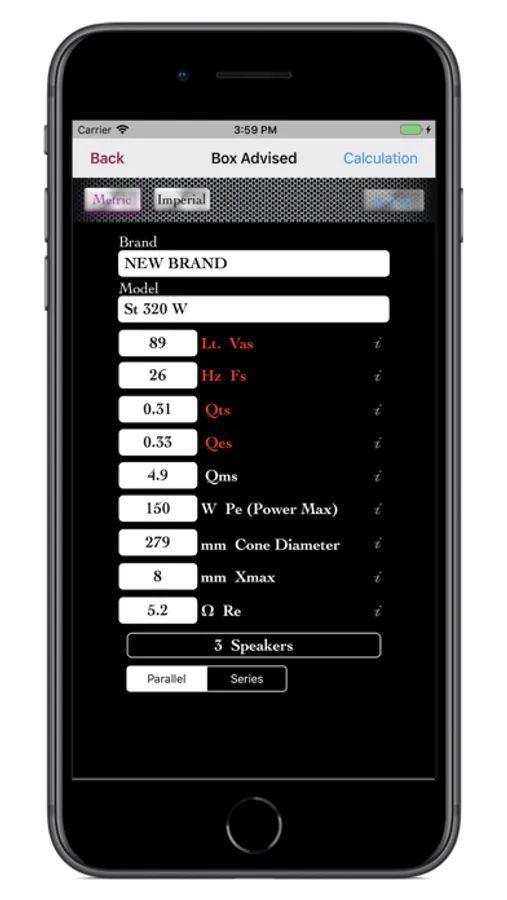 • Tool for calculating the electric resistance of two or more speakers, single or double coil in parallel, series or series / parallel.