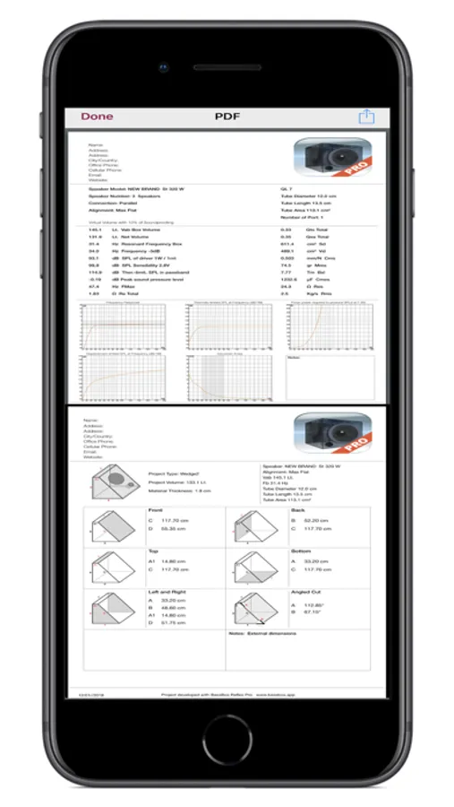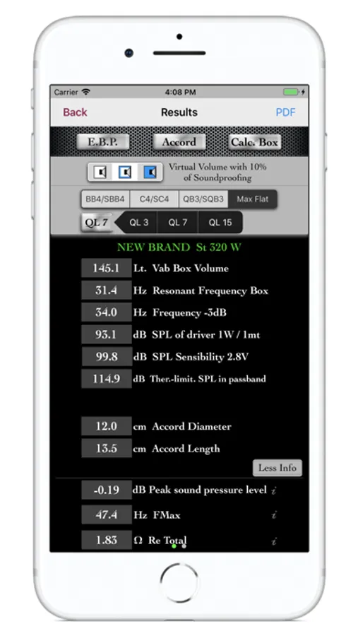 • Full results data: Sensibility Spl, Efficiency Spl, db Peak Level, Fmax, Re Total, Qes Total, Qts Total, Sd, Vd, Cms, Mms, Bxl, Cmes, Rms, Res.