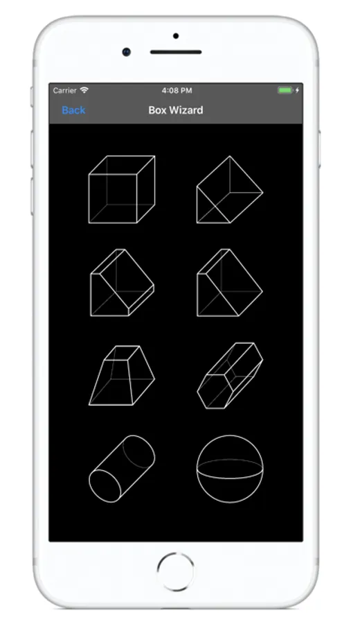 Selecting the shape and calculation of the volume of the box. Designs the box in the following forms: