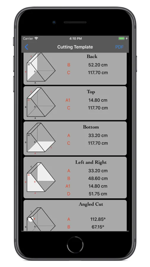 • Detail of panel measurements to build the case with cut PDFs and cut pattern.