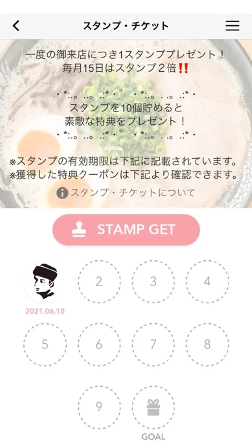 ・来店されるごとにたまるスタンプカードもあり、