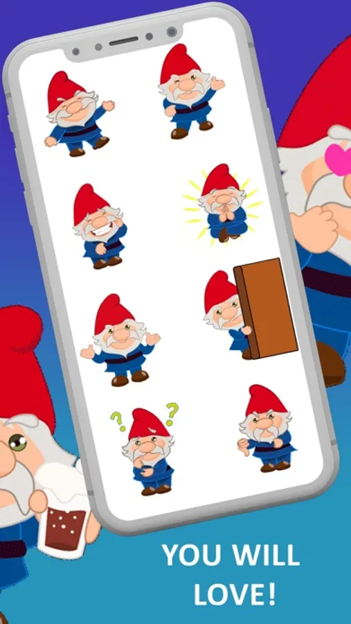 The Gnome stickers can be placed over incoming text messages, GIFS, photos, and other stickers!!