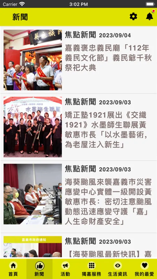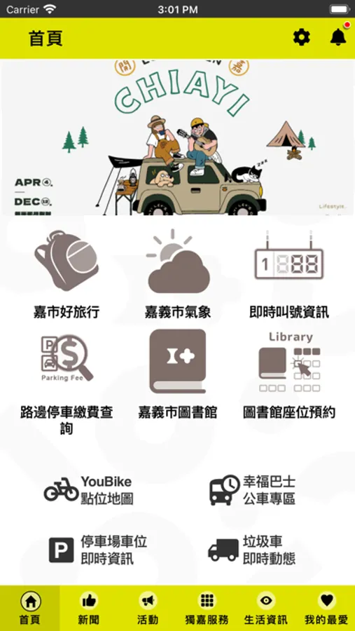 ● 「新聞」&「活動」:匯整了嘉義市的焦點新聞、活動總覽…等資訊,讓您更便捷地掌握市政的脈動。