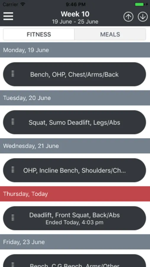Example of weight lifting programs included in app: