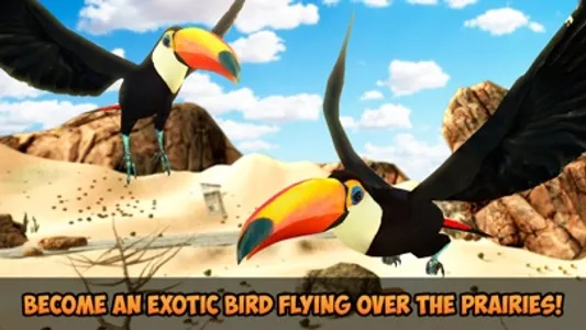 Addicted to the animal simulator games? So welcome to wild prairies and tropical jungle! Join the flying side of these places and become one of these exotic colorful birds – American toucan! Spread your wings to enjoy the flight, mate with other birds, create your own bird family, raise little toucans and have fun playing Toucan Simulator 3D: Bird Life!