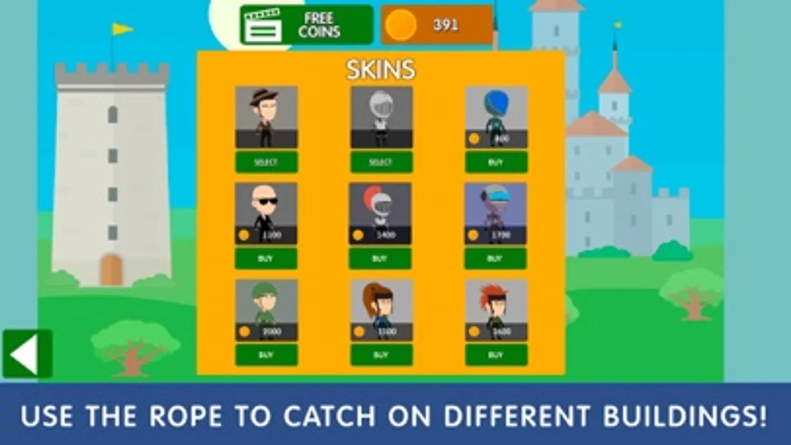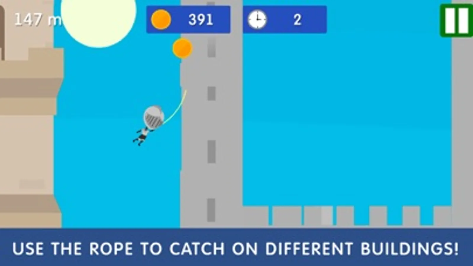 Mind that if you fall – the game is over! So power up all your skills in balance, aiming and jumping to be the best little rope man ever! Start in the ordinary city, do your best to jump as far as it possible and complete every mission on your way! Join the ordinary city and soon you’ll be able to unlock special locations, full of different boosters and interesting objects!