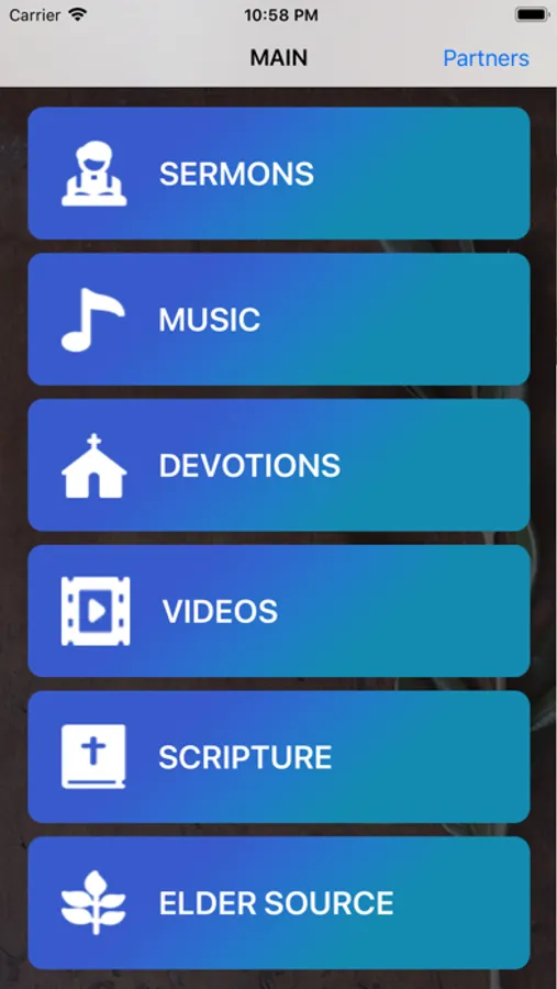 Map, Events, Music, Facebook, Twitter, Contact Us, Partners, Sermons, Devotions, Videos, Senior News, About Elder Source, Support