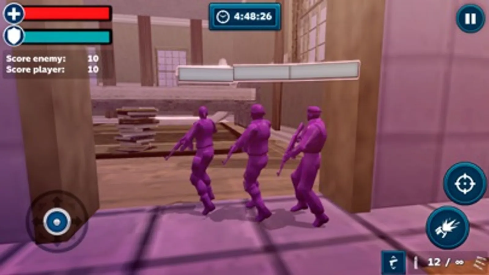 Are you ready to destroy bad guys with your own little army of green plastic soldiers? Wage war inside a living room, office room, kitchen or bathroom! Capture the base of your opponents and try not to lose any soldier of your side!