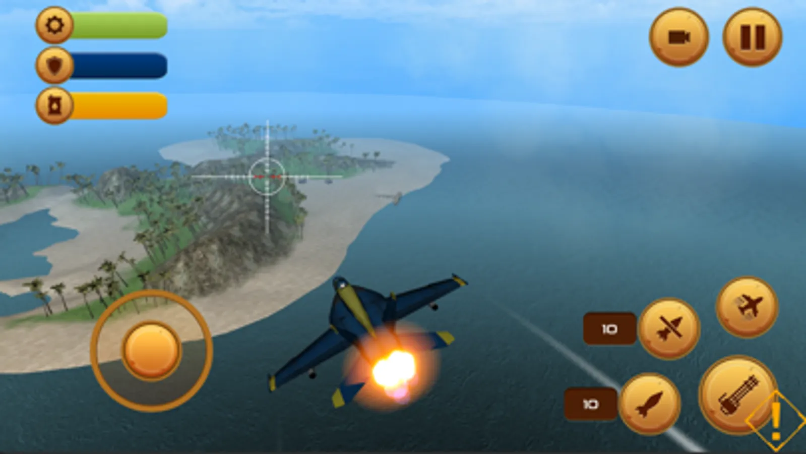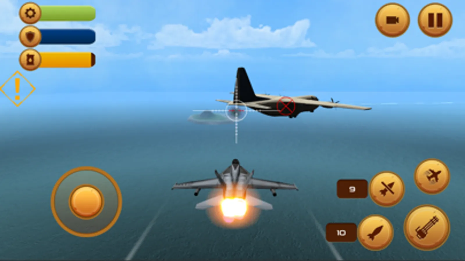 Battle with powerful MKII fighters, heavy planes, antiaircraft machine guns and mighty rocket launchers! Become a ruler of this place speeding up your war air jet and dropping the bombs! Compete different fight and destroy missions to create an image of the most powerful captain ever! Watch your enemies falling down into the ocean and have fun playing F18 Airplane Fighter Flight Simulator!