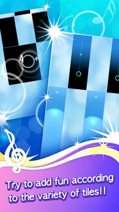 The tiles fall from the top according to the music score! You can complete your own music, if you tap the tiles in order.