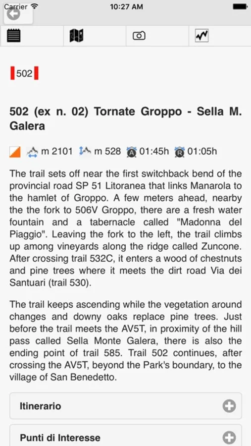 Cinque Terre Hiking Guide è una app dedicata ai sentieri del Parco delle Cinque Terre. E' possibile ottenere ricche informazioni sui sentieri, riconoscere il loro livello di difficoltà (Turistico, Escurisionistico, Esperto) e consultare le relative foto e video. L'applicazione inoltre può rilevare la tua posizione sul territorio tramite GPS o WiFi (previa autorizzazione), consentendoti di individuare la tua posizione sulla mappa.