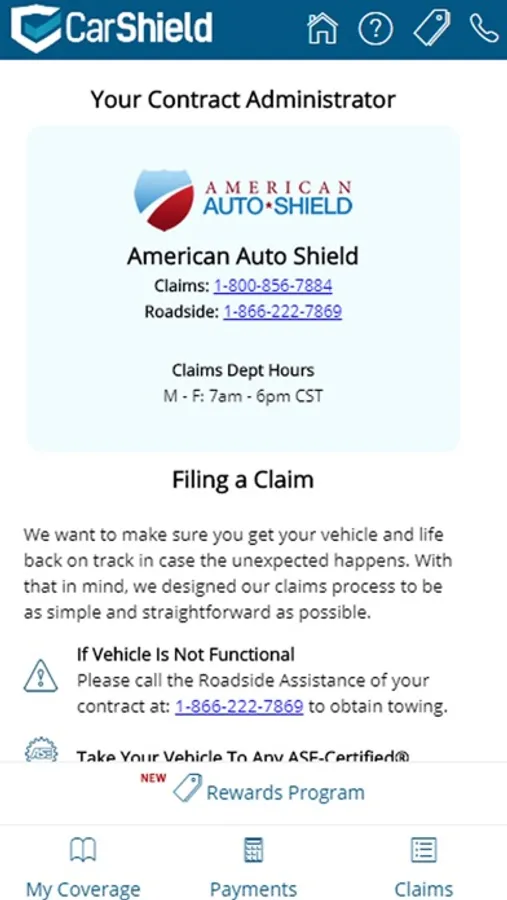 CarShield Mobile is designed for contract holders to be able to view details of their contract through their mobile device. Application includes information for claims, roadside assistance and customer service for when you need it most.
