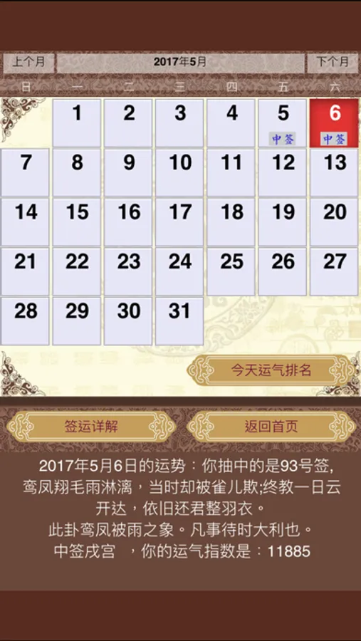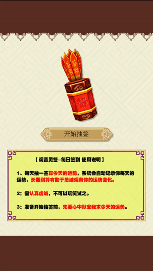 这个APP的特点:每天记录你的抽签结果,和广大爱好者比较运势结果。观测用户的运势走向。