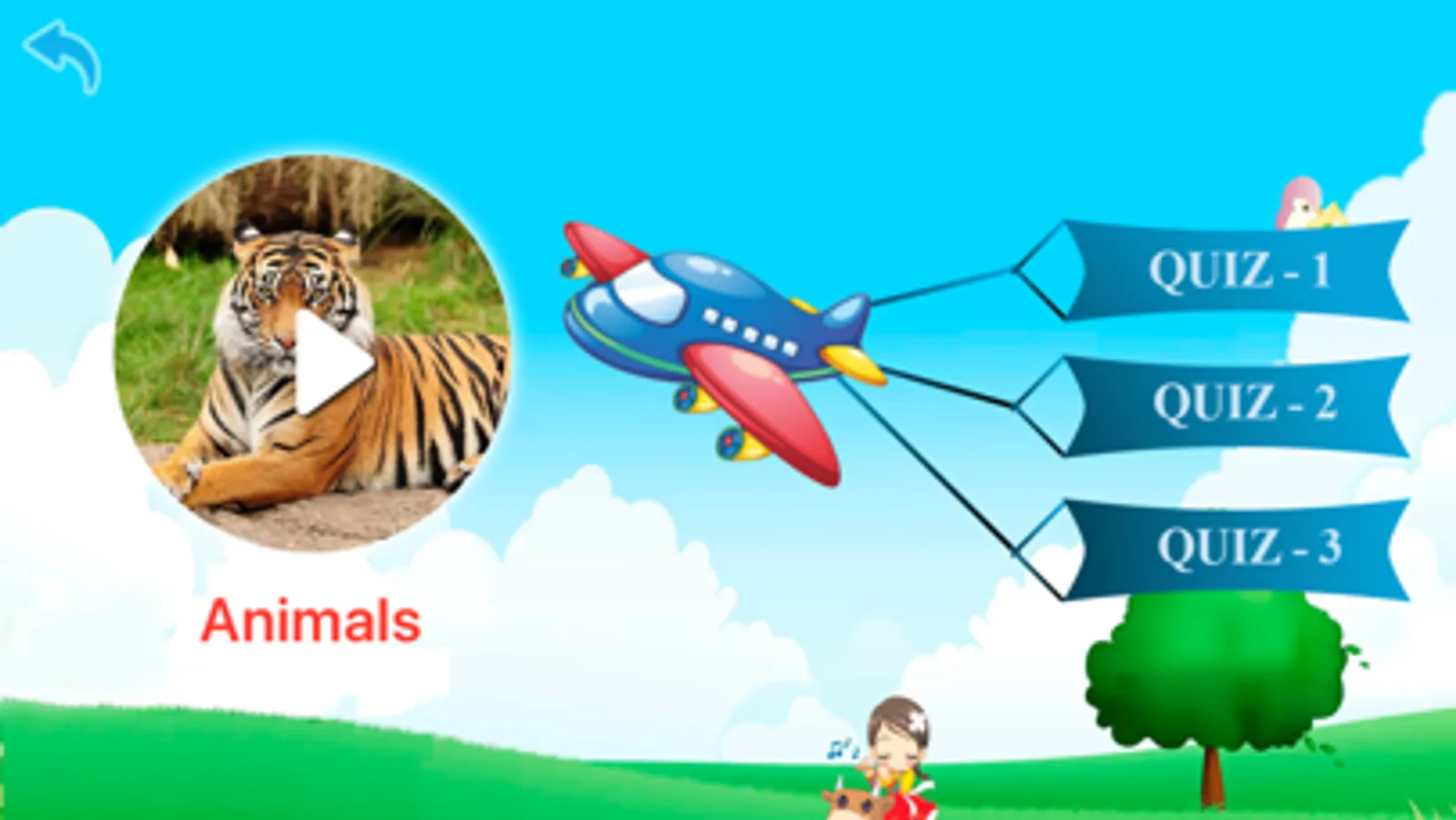 -In this part, kids can check his memory power and take a fun quiz to see how many of the words he or she knows [Like - select correct question Animal name among the four animals]