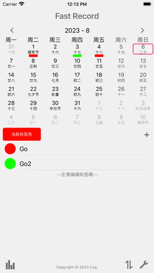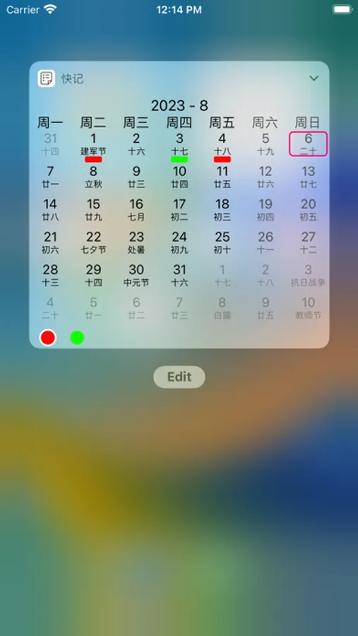 在以周或周以上的时间为单位时, 记录哪一天健身, 哪一天加班, 哪一天请假, 或者其他的事情, 都可以用[快记]来快速记录在日历上!仅需3步!