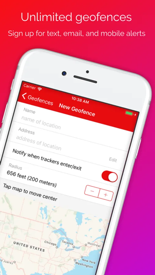 Set and receive notifications when your trackers move in and out of geofences you create.