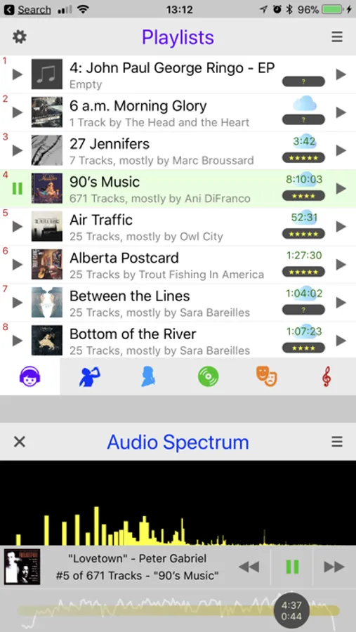 • Sort by title, artist, composer, genre, rating, last played date, etc...