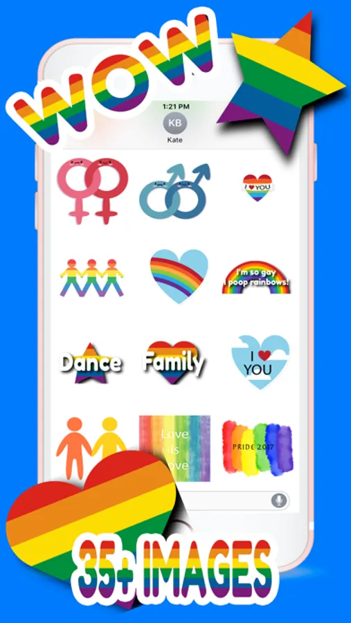 This gay pride themed sticker pack has over 35 high quality images that you can use to share your pride, maybe make a big announcement or even harass your straight friends!! Jump into the fun!
