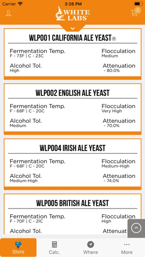 Quickly order yeast, enzymes, nutrients, analytical laboratory tests, educational classes and items from our gift shop through the White Labs app.
