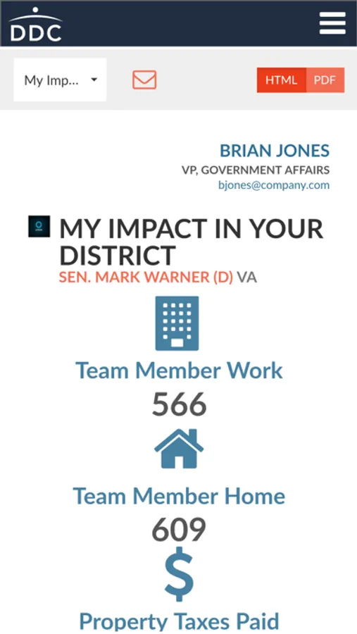 Create reports for specific legislators that be leave behinds after meetings or presentation material during meetings to show your impact directly to legislators.