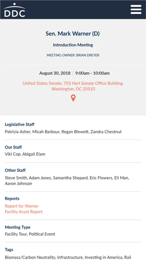 Access key data from your Democracy Direct® database, schedule meetings with legislators and generate custom reports directly from your mobile device or tablet in a quick, easy, and secure way for you, your lobbyists, or legislators.