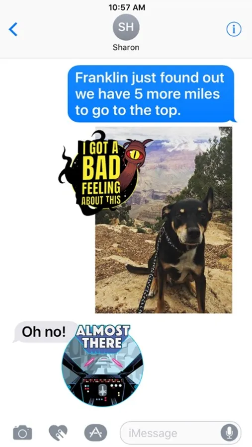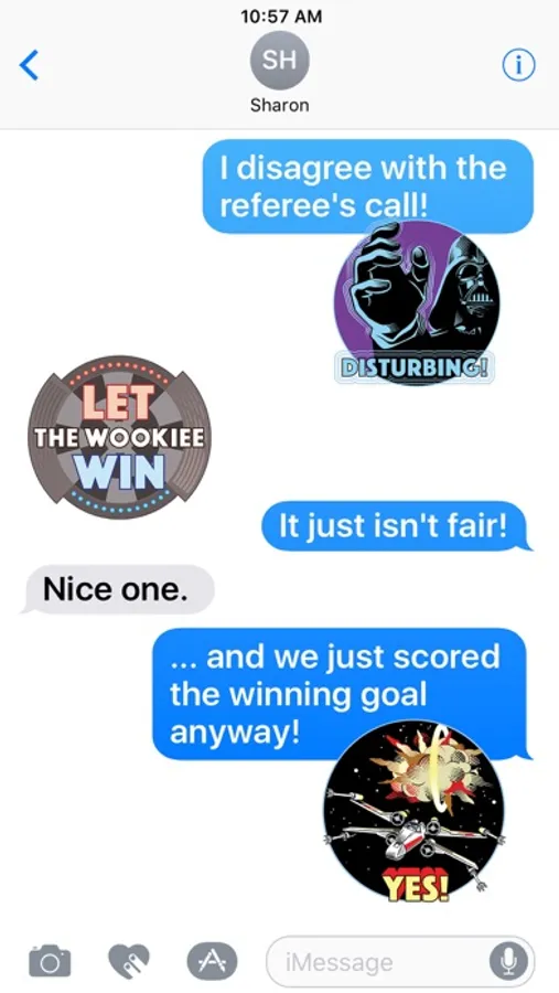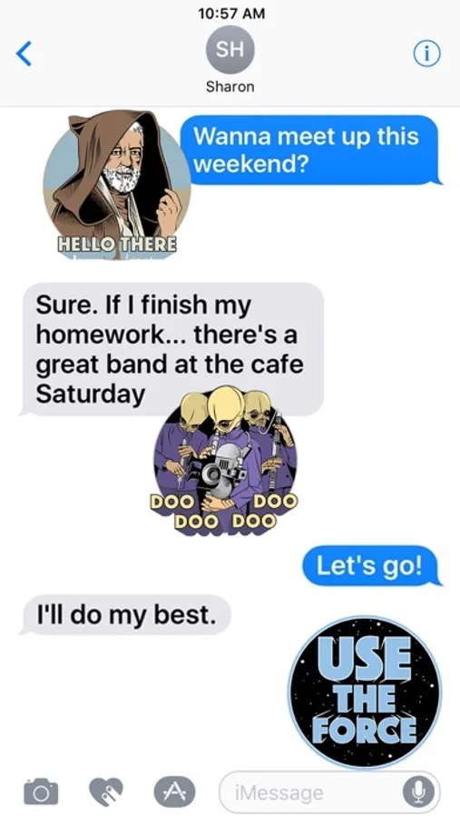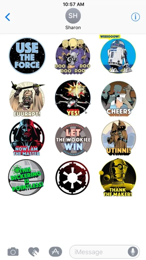 Express yourself with classic phrases from the original Star Wars film. Layer stickers over your photos to compose images for your friends and family.